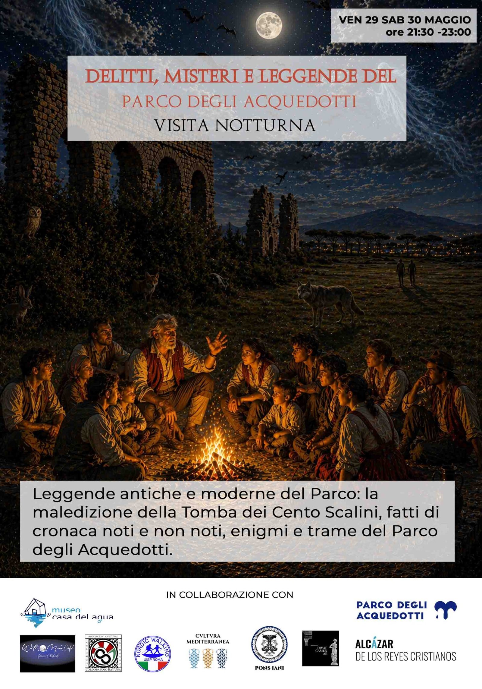 Venerdì 29 e Sabato 30 Maggio Settembre , alle ore 21:30. andremo alla scoperta della faccia del Parco che non conosci, Delitti, Misteri e Leggende: La quarta di sette visite del Parco degli Acquedotti: